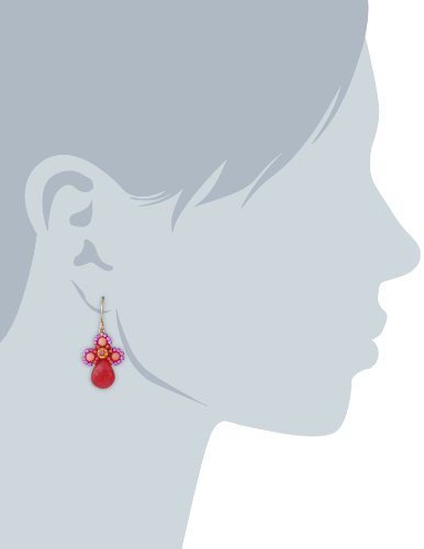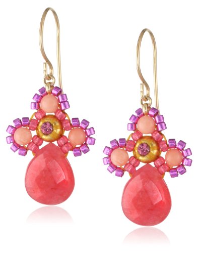 Small flower swarovski center pink coral and dyed red quartzite miyuki earrings