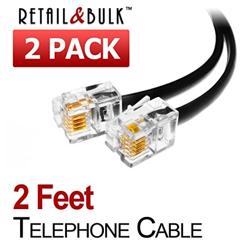 (2 Pack) 2 Feet Short Telephone Cable Rj11 Male to Male 24 inch Phone Line Cord