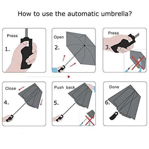 5.QUICK AND EASY TO USE No need to juggle the items you are carrying, simply press the button on the handle to open, press it again, the canopy will be retracted.