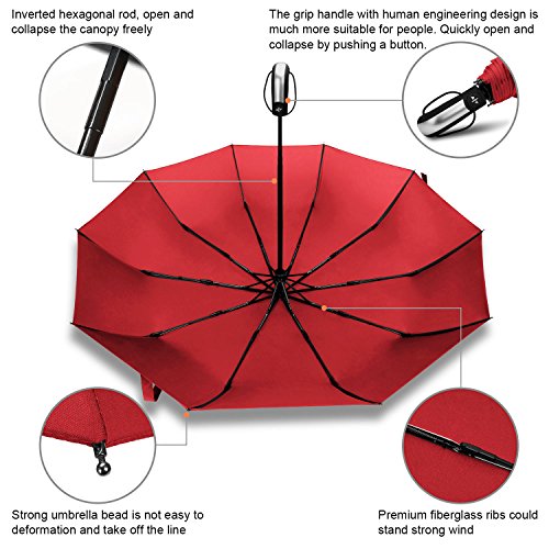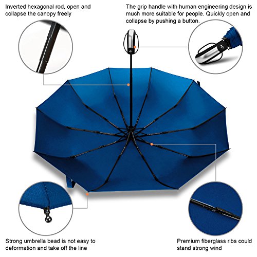 2.POWERFUL FIBERGLASS RIBS 10 Fiberglass ribs ensure to minimize the chance of turning inside out and super windproof.