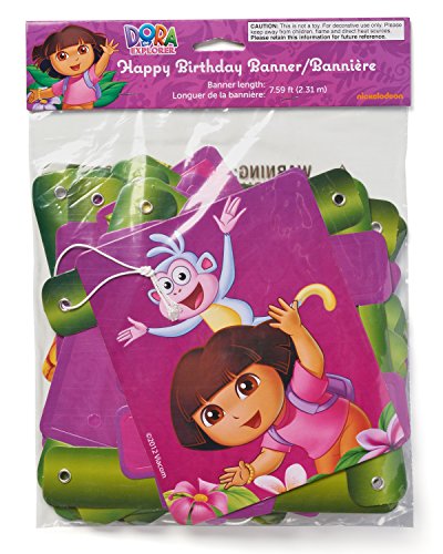 Studio : American Greetings- Toys Publisher : American Greetings- Toys Binding : Toy Product Description Say Feliz Cumpleanos with this aDORAble hanging birthday banner! Party guests will love the tropical floral design featuring Happy Birthday lettering and characters Dora and Boots! It even comes with strings at each end for easy hanging! Measures 7.59 ft. It's the perfect party decoration for your child's Nick Jr. or Dora the Explorer-themed party. 0