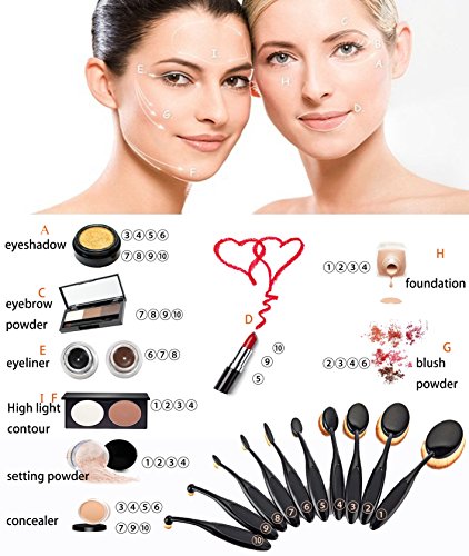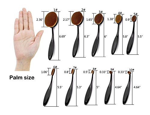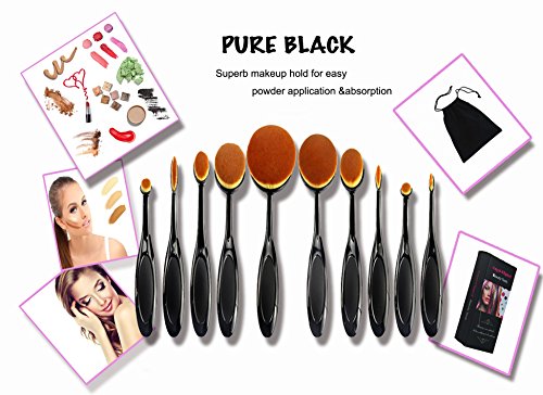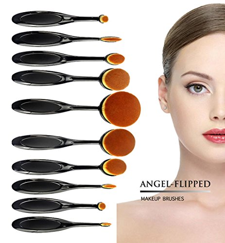AngelFlipped Oval Professional Cosmetic Foundation Makeup Brush Set 10 Pcs Toothbrush Design(black)