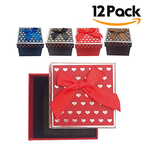 Valentine’s Gift Box Set With Bow and Heart Pattern 3.5 x 3.5 Inches, 4 Colors, 12 Piece Set