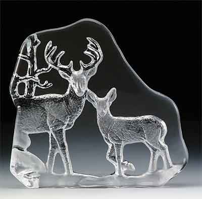 -. Title : Engraved Lead Crystal -- Deer/Fawn