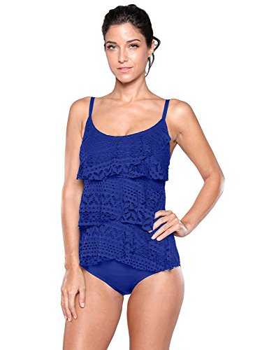 -. Title : Blossil Womens Lace Crochet Layered Cami One Piece Swimsuit Overlay Bathing Suit