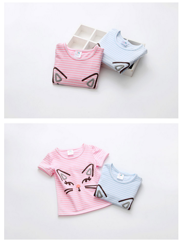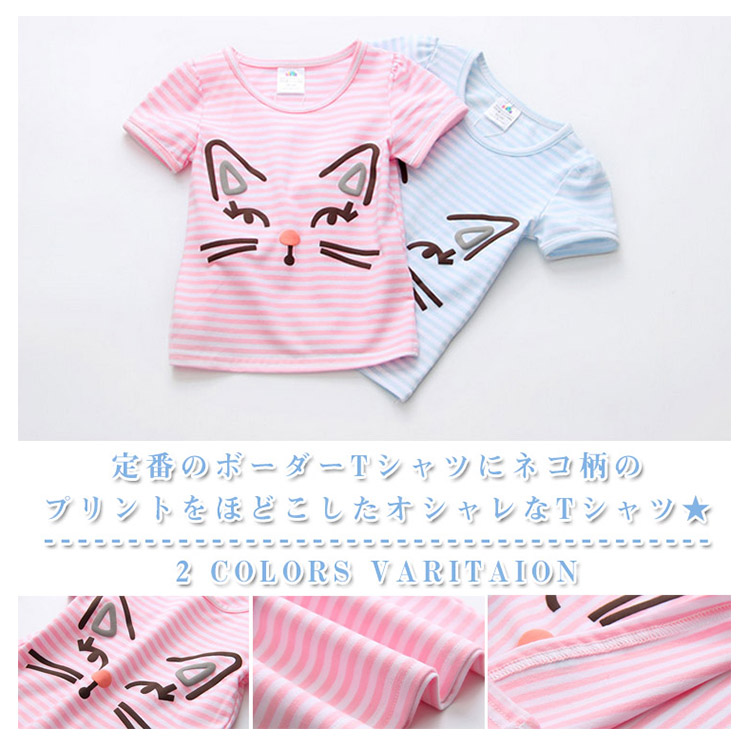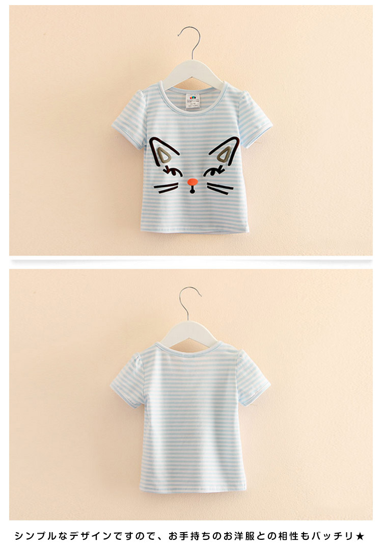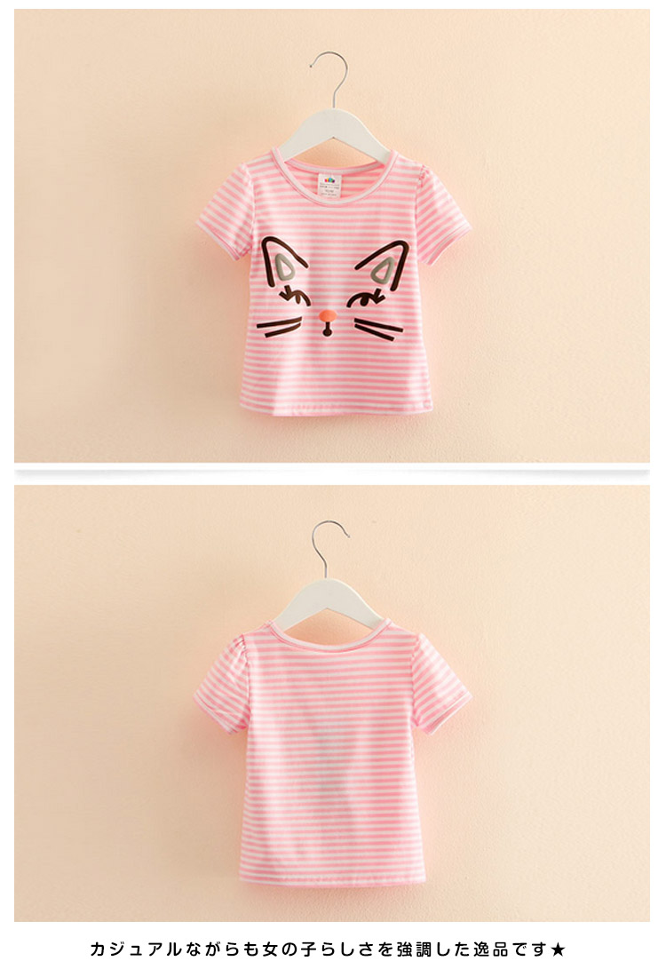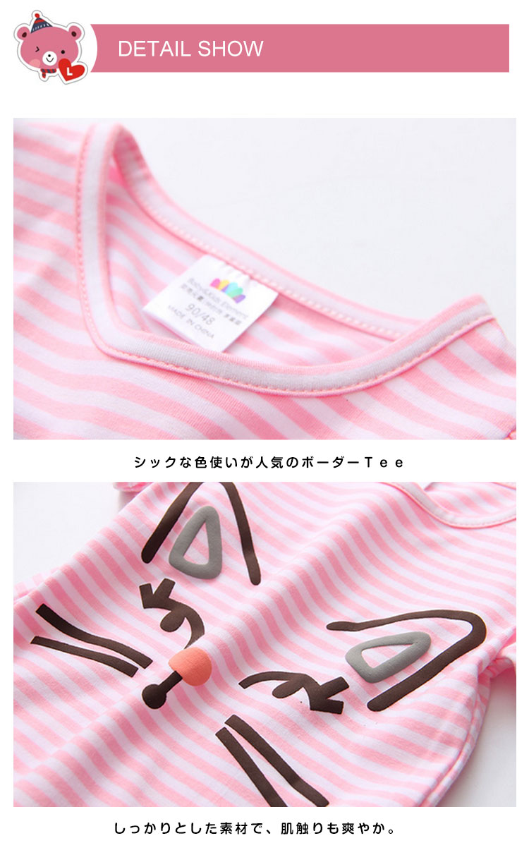 | 定番のボーダーTシャツにネコ柄のプリントをほどこしたオシャレなTシャツ★ カジュアルながらも女の子らしさを強調した逸品です★シンプルなデザインですので、お手持ちのお洋服との相性もバッチリ★ | |
