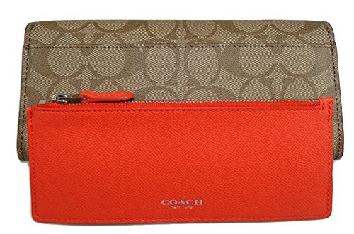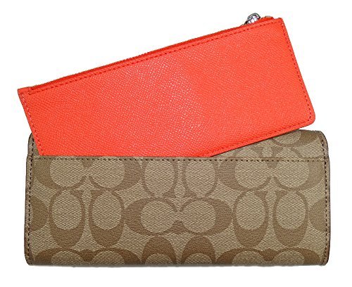 COACH SIGNATURE PVC SLIM ENVELOPE WALLET WITH POUCH KHAKI & CORAL
