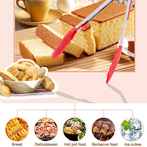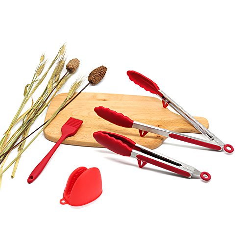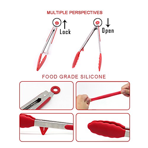 Studio : Fodier Publisher : Fodier Product Description FODIER Silicone Tongs 2-Pack (Red, 9 12-inch), Heat Resistant, Stainless Steel Cooking Tongs, Serving Tongs, Salad tongs, Frying tongs, BBQ Tongs Description: Convenient and Durable: Made with premium food-grade silicone scalloped heads and stainless steel handles, these ergonomically designed locking tongs offer a stain and odor resistant finish that's hypoallergenic, protects your food, and is safe for your family. Product Details: ·Food Grade Silicone Tips ·Stainless Steel Body ·Stain and Odor Resistant ·Heat Resistant (480 degree) ·Safe for Kitchen Oven and BBQ Grill Use ·Non-Stick ·Ergonomic Design Dishwasher Safe Package Includes: -1 x 9 INCHES TONG WITH A STURDY SILICONE TIP. -1 x 12 INCHES TONG WITH A STURDY SILICONE TIP. -2 bonus: 1 x SILICONE BRUSH, 1 x ANTI-HOT GLOVE Our team dedicate to provide Amazon customers with high quality products and excellent service. Customer's satisfaction is our goal . If you have any problem, please kind contact us directly, our team will service you within shortest time, and make you 100% satisfaction. How to Contact us: Sign in your Amazon account > Choose "Your Orders"> Find that order ID> Click "Contact seller" on the right side. 100% Customer Satisfaction Guarantee: 30 DAYS MONEY BACK WARRANTY If you are not 100% satisfied with the purchase, please contact us to resolve the issue or ask for a refund.