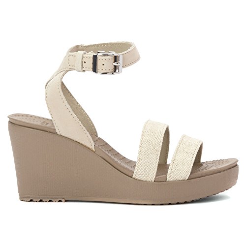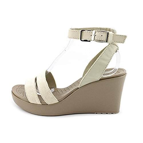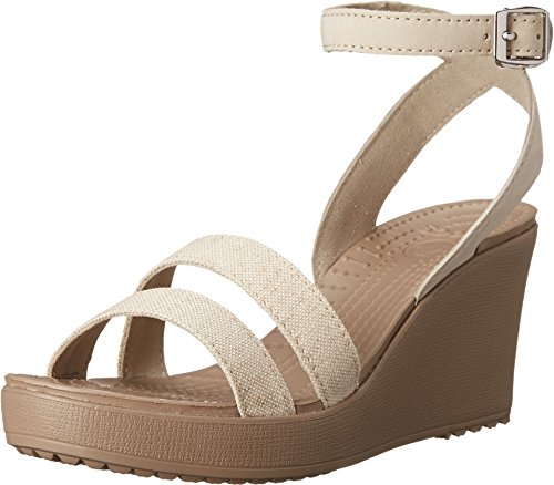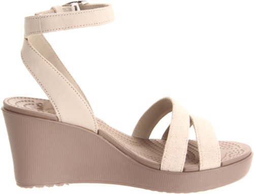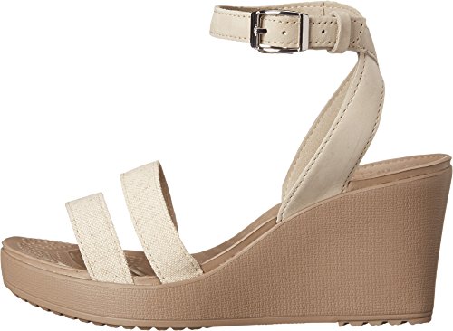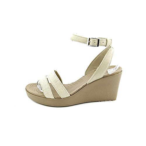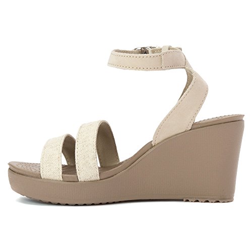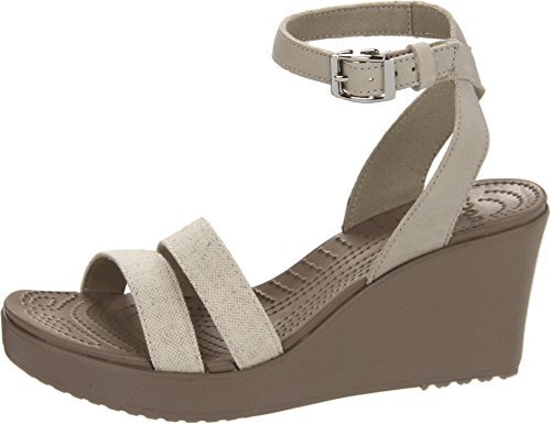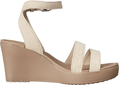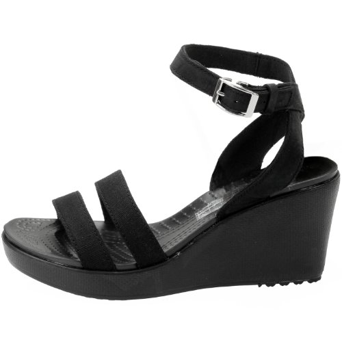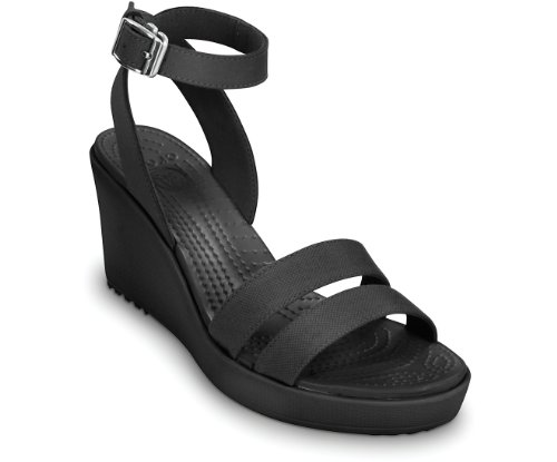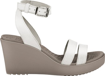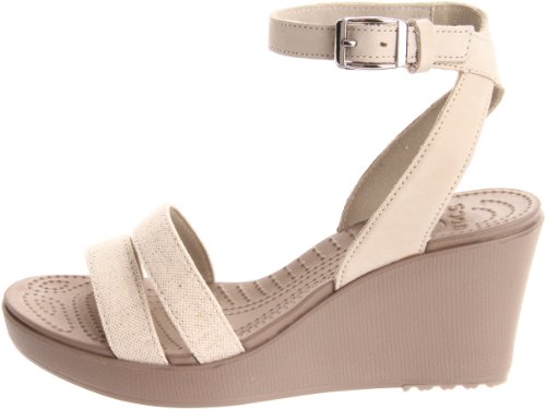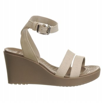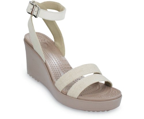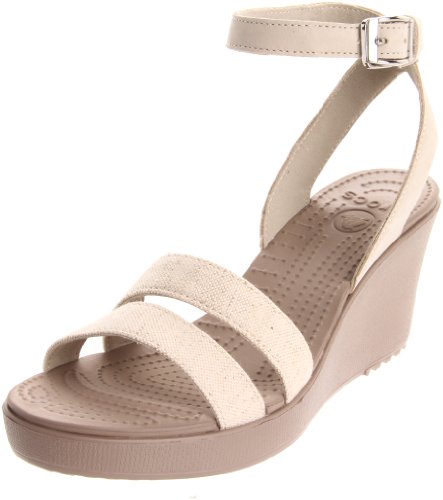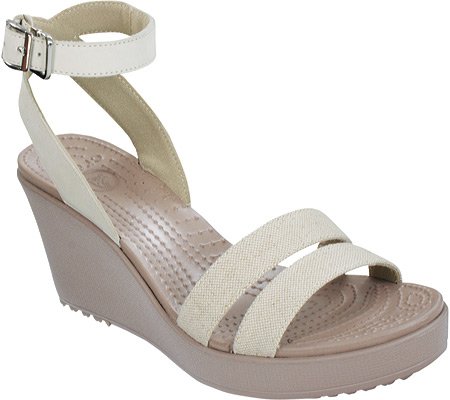 Product Description With the Crocs Leigh Wedge you can go straight from the beach to street in style and comfort. It has the great look of a wedge with the expected comfort of a Croc for those long summer days that lead you into the night. The Leigh features a linen upper with leather detailing, an adjustable ankle strap, and Crocs trademark circulation nubs on the footbed.
