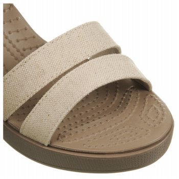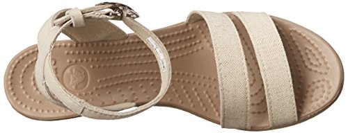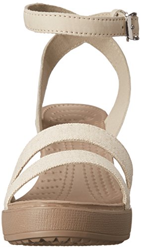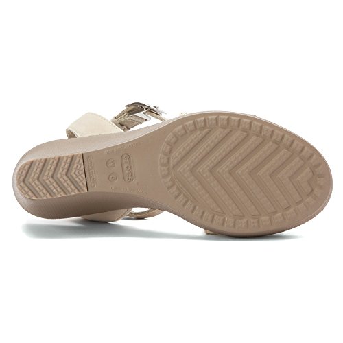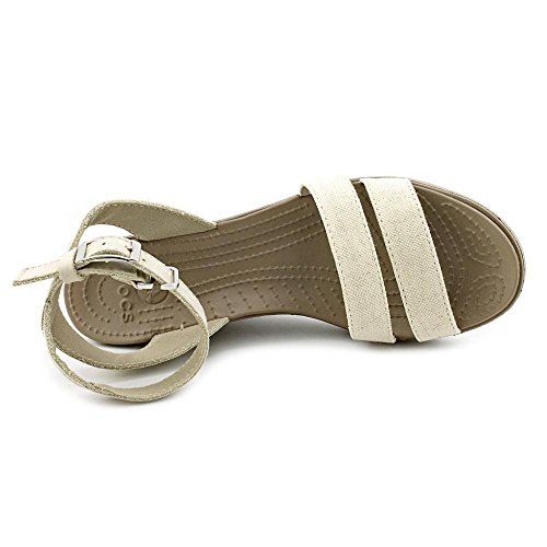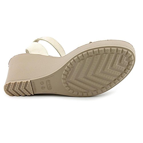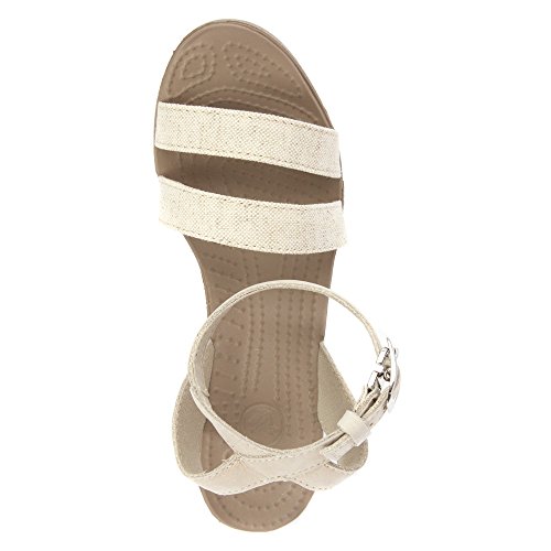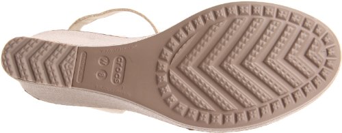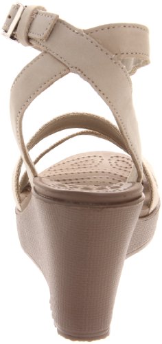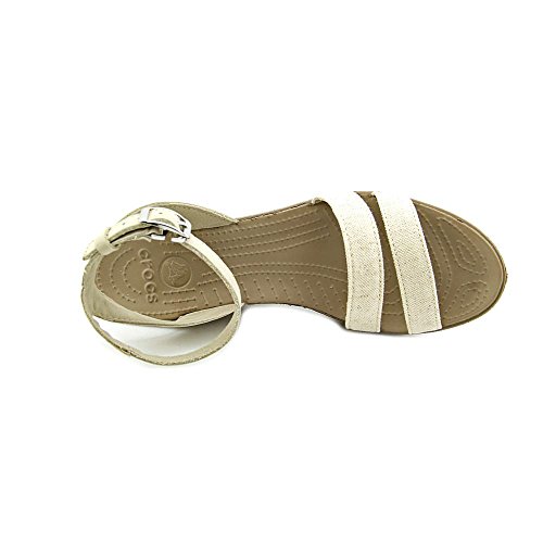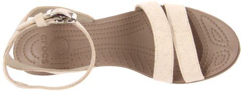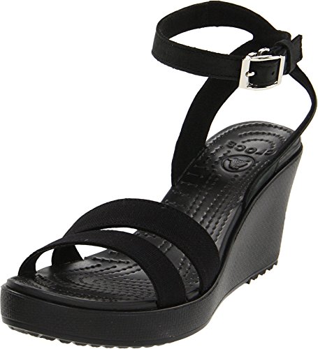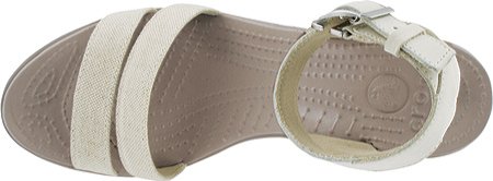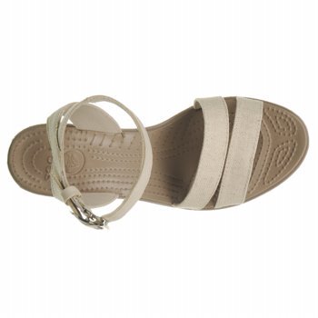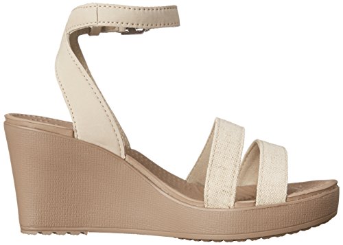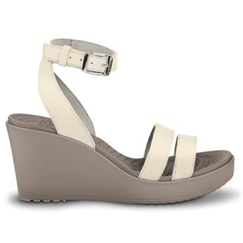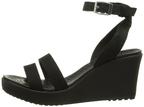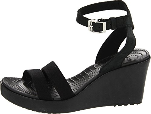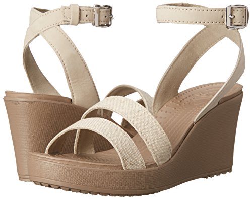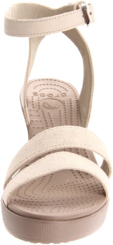Product Description With the Crocs Leigh Wedge you can go straight from the beach to street in style and comfort. It has the great look of a wedge with the expected comfort of a Croc for those long summer days that lead you into the night. The Leigh features a linen upper with leather detailing, an adjustable ankle strap, and Crocs trademark circulation nubs on the footbed.