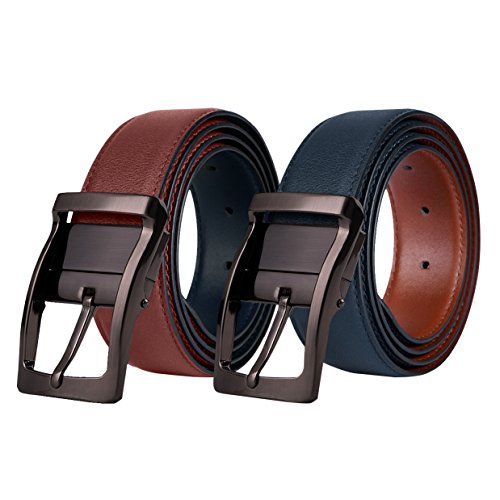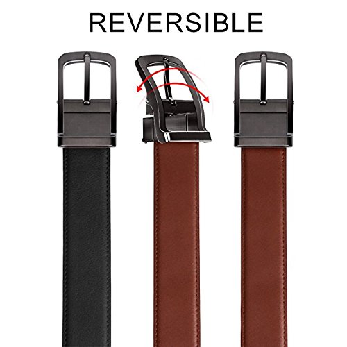 -. Feature : ✔ REVERSIBLE MENS LEATHER BELT:Rotated belt buckle makes it easy to reverse the leather belt from black/blue to brown and vice versa.No need to unscrew anything,just pull and twist. / ✔ ADJUSTABLE LEATHER BELT:Our leather belt can be cut to your desirable length and with a removable belt buckle,suitable for any waist! / ✔ GENUINE LEATHER BELT:BESTKEE mens belts are made of full-grain soft leather,durable enough.6 sizes to choose and 5 holes in the leather belt. Width:1.38" / ✔ PERFECT GIFT:Our fashion leather belt is warpped in a luxury gift box,excellent present for husband,boyfriend,father and male colleagues as a birthday or anniversary gift. Matching daily outfits perfectly! / ✔ QUALITY GUARANTEE:We promise 30 days free exchange without reason and 360 days warranty!