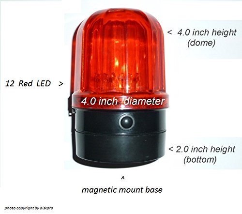 6" High 12 Red LED Beacon Flashing Light, Magnetic Mount base, 4.0" Diameter, using 2 D-cell batteries (Not included), Recommended for Indoor or party novelty use