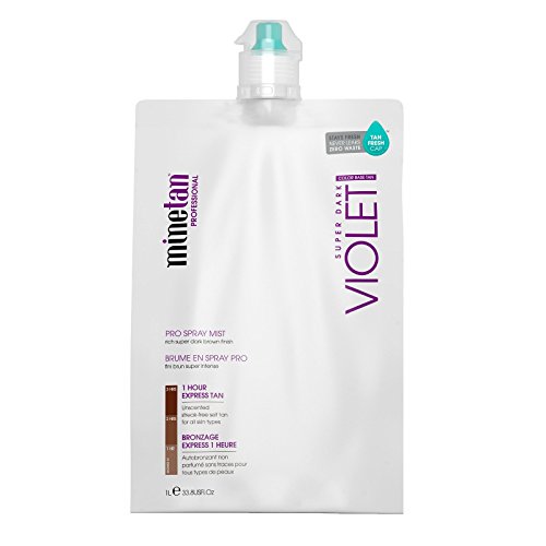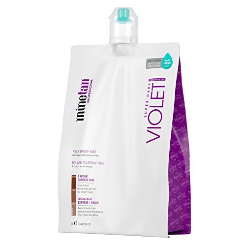 Violet base 1 hour express tan with quadruple bronzers inspired by the exotic European sun. Look like you've just stepped off the beach in Positano or flew in from a Mediterranean holiday escape. Violet gives you a rich, super dark brown finish inspired by the exotic European sun. A mix of violet and dark brown bronzers leaves skin with a color finish that captures deep olive European skin tones. The 1(HT) formula contains Fast Tanning Actives with Quad Bronzing Technology to speed up the tanning process. 100% natural DHA tan actives are enhanced with brown and violet quadruple dark bronzers work with tan extending multi-vitamins and oils to deliver a picture perfect tan in an instant that continues to develop into a rich, super dark brown finish without the fake tan smell. Violet Pro Spray Mist is best suited for all skin types wanting a rich, warm super dark brown skin finish, inspired by the European sun.Feature