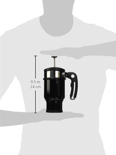 Designed to allow the luxury of French press brewed coffee on the go, this Double Shot French press mug from Planetary Designs functions as traditional French press yet it is extremely durable for travel. It is designed to fit car drink holders and has a hidden storage canister in the base to stash more coffee or tea. Even better, it comes with a bonus standard lid for easier sipping!4-1/4" diameter x 6-3/4" H; 14 ounce capacity