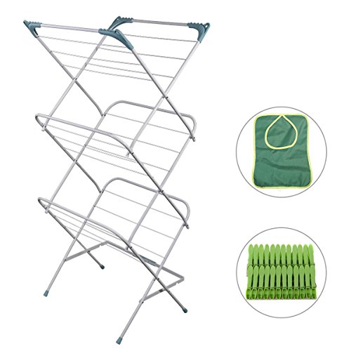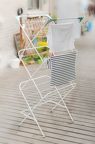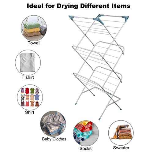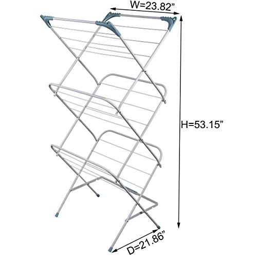 SPACIOUS: 3 Tier rack offers 36ft of drying space and 4 top corners can hold extra hangers for long clothes