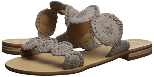 Product Description Jack Rogers' classic double banded sandal features iconic tonal whipstitching and rondelle accents. 3/4 inch stacked heel. Full rubber outsole. Suede upper. 0