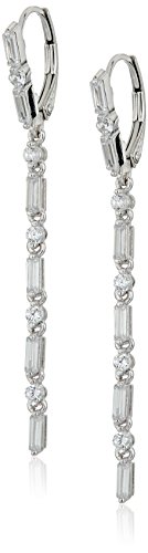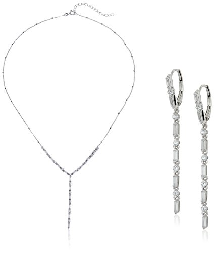 Sterling Silver Cubic Zirconia Y necklace and Linear Drop Lever Back Earrings Jewelry Set, 18+2" Extender