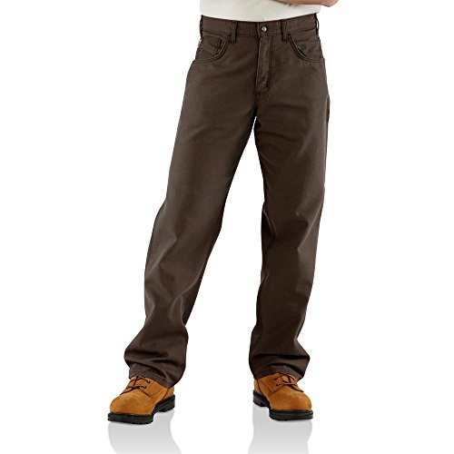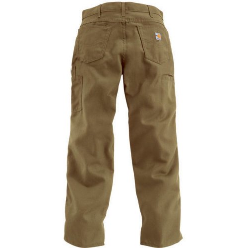 Studio : Carhartt Sportswear - Mens Publisher : Carhartt Sportswear - Mens Binding : Apparel Product Description Carhartt's flame-resistant loose fit midweight canvas jean is great for warmer weather, made of 8,5-ounce flame-resistant canvas, an 88-percent cotton / 12-percent high-tenacity nylon blend, it has a loose seat and thigh and sits slightly below the natural waist for a comfortable fit, The brass zipper fly has nomex and reg, zipper tape and the high-tension waist snap closure is arc resistant, It also has a cell phone pocket, utility pocket, left leg hammer loop, triple-stitched main seams, and a 19-inch leg opening that fits over work boots 0