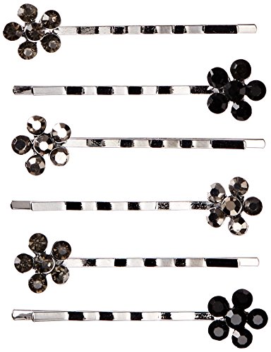 Bobby Pins 6/Pkg-Studded Flower/Silver/Black