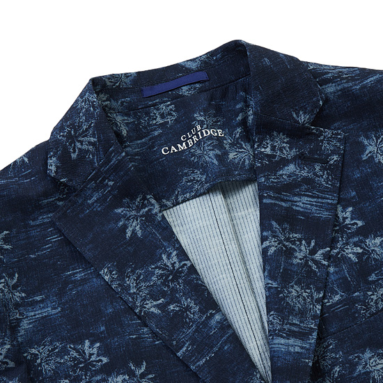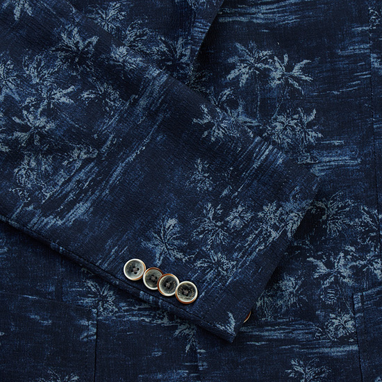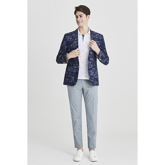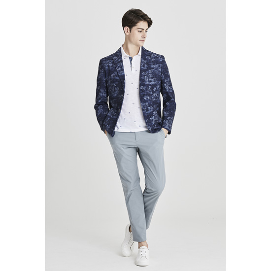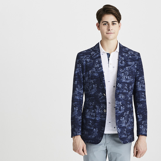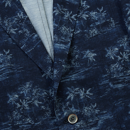 - 시즌무드의 유니크한 야자수 패턴이 돋보이는 투버튼 자켓.