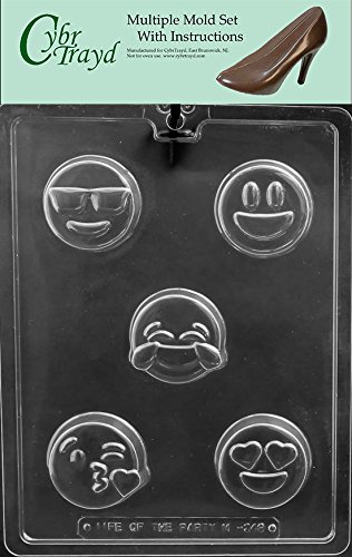 CybrTrayd M249-6BUNDLE "Emoji Faces Cookie" Chocolate Candy Mold, Clear
