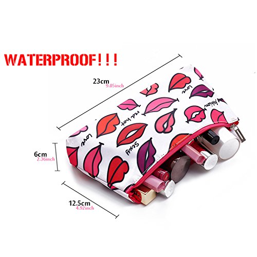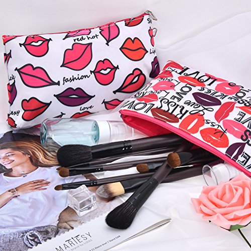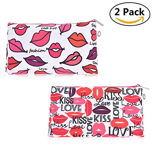 Waterproof Makeup Bags For Women Lips Printing Girls Travel Cute Small Cosmetic Bag (2pack)