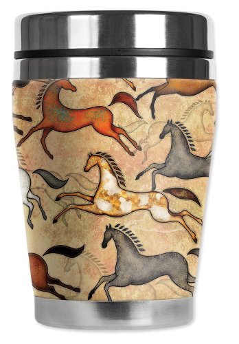 Mugzie Southwest Horses "Mini" Travel Mug with Insulated Wetsuit Cover, 12 oz, Black
