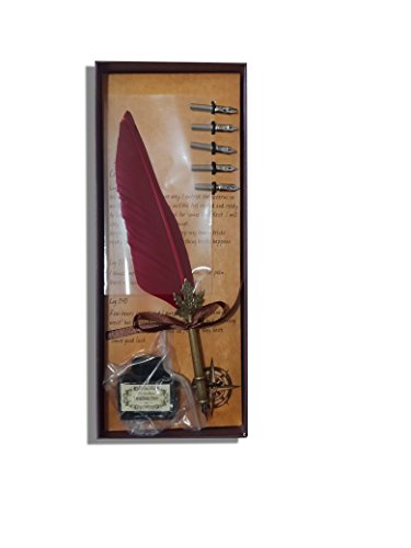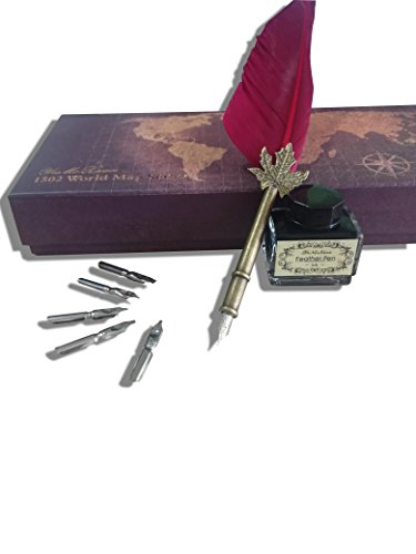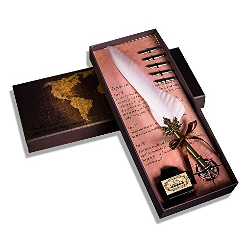 Antique Copper Feather Pen with Ink and Steel Tips Calligraphy Quill Pen Gift Set (white)