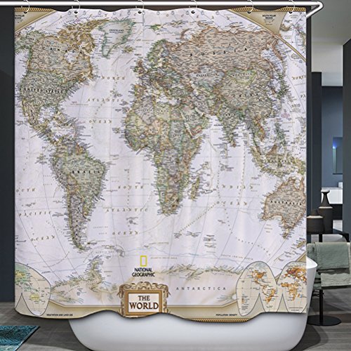 Monimo Home Colored Map Art Print Decor Polyester Bathroom Shower Curtains Liner With 12 Hooks,71 x 72 inch