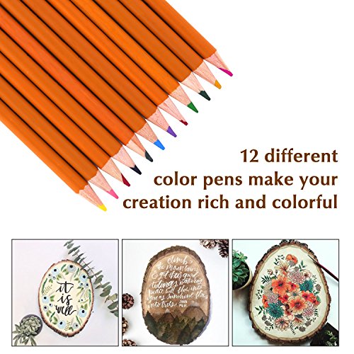 - √ WHAT YOU GET. Package comes with 1 x Wood Burning Pen, 28 x Wood Burning Tips, 12 x Colorful Pencils, 5 x Carbon Papers, 1 x Metal Stand, 2 x Plastic Stencils and 1 x Carrying Case.