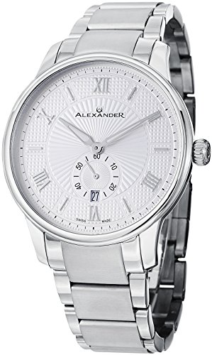 -. Title : Alexander Statesman Regalia Wrist Watch For Men - Silver White Dial Date Small Seconds Analog Swiss Watch - Stainless Steel Bracelet Watch - Mens Designer Watch A102B-01