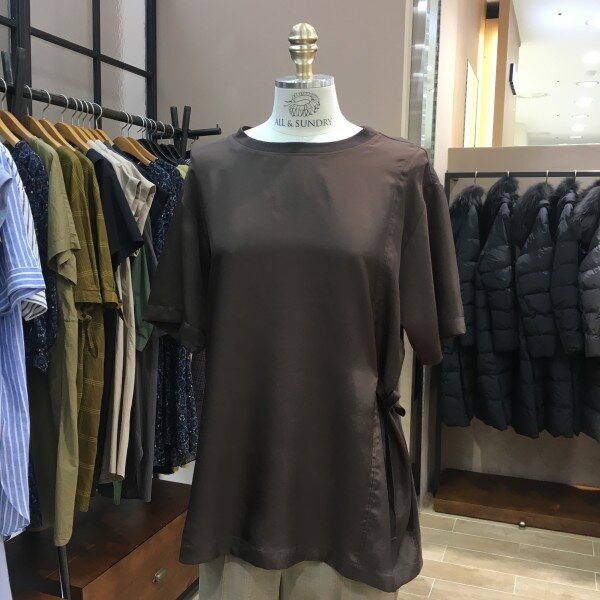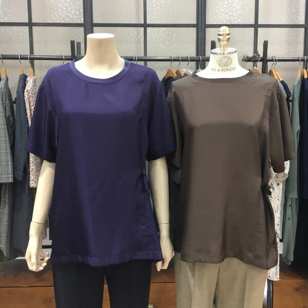앞면은 광택있는 레이온 소재로 뒷면은 면재질로 독특하지만 베이직한 디자인의 티셔츠 소개해드려요~ 여유있는 박시한 느낌으로 빈티지함 돋보이는 반팔T이구요. 한쪽 옆구리에 끈디테일로 포인트를 주었습니다^^ 힙을 반정도 살짝 덮는 기장감이 하의 안에 단독으로 가볍게 넣어입거나 꺼내서 입어도 ! 아니면 아우터 안에 레이어드로도 아무렇게나 착용하셔도 좋았어요~ 깔끔한 라운드넥에 팔라인은 여유로워 부담없고 꼼꼼한 마감처리로 늘어짐 걱정없이 입어져요 :) 재질과 컬러감만으로 내추럴한 분위기로! 데님에만 딱 입어도 멋스러운 티셔츠랍니다. 총장길이는 55사이즈 기준으로 71cm 입니다.