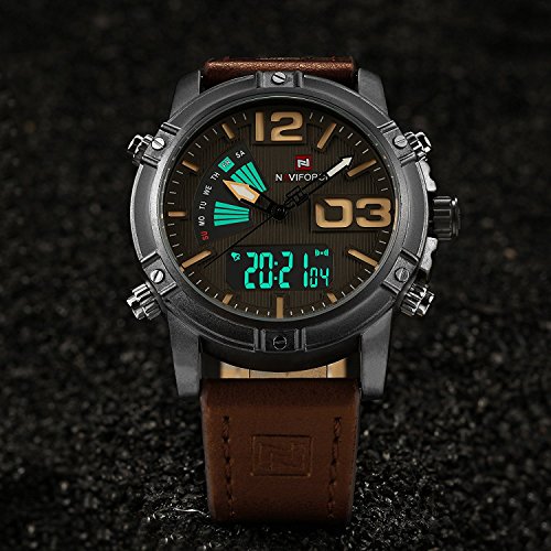 -. Title : NAVIFORCEファッション高級ブランドメンズ防水ミリタリースポーツメンズクォーツデジタルレザー腕時計