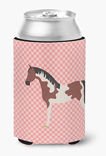 Caroline's Treasures BB7907CC Pinto Horse Pink Check Decorative, Can Hugger, Multicolor