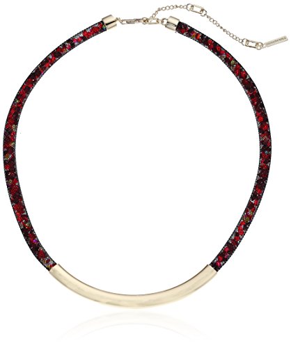Kenneth Cole New York "Red Items" Gold Frontal Bar with Mesh Tube Choker Necklace