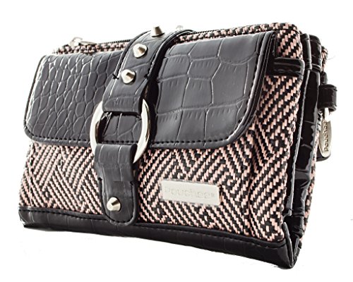 Product Description The Kash Karee wallet is the ultimate super wallet. It fits snuggly in your Pouchee Plus Deluxe or handbag and provides easy access to all of your everyday essentials. The adjustable shoulder strap makes it convenient for a day at the market or the wristlet strap provides hands-free usage when you are juggling too many tasks. Features a long horizontal front pocket large enough to hold a smart phone secured by closure. The back features a horizontal pocket secured with a center snap and a zippered pocket for change. The dual zipper pocket opens into inside compartments for all essentials with multiple credit card slots and transparent ID slot for easy exposure. Dimensions: 4.25" H x 7.25" W x 1" D Weight: 10 oz 0