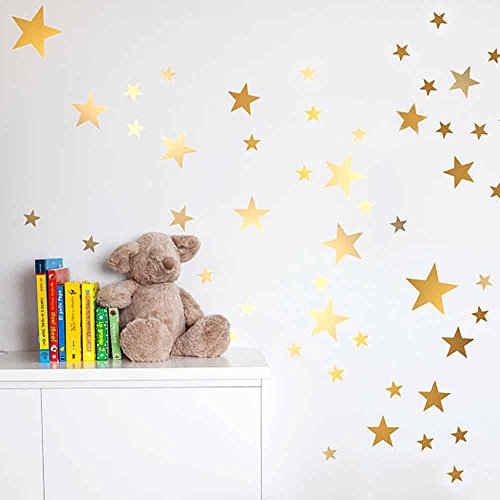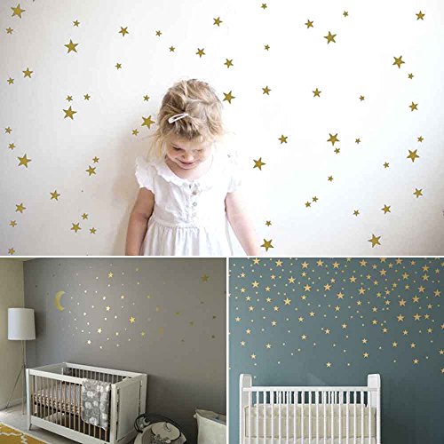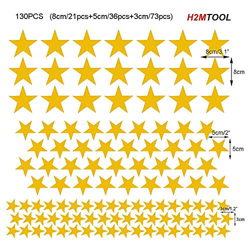 Star Wall Decals, H2MTOOL 130 PCS Gold Removable Wall Stickers for Kids Room Decor (Gold, 130 decals)