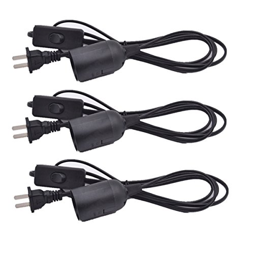 HESSION 3 Pack Pendant Handing Light Socket Cord with On/Off Switch, 5.9Ft Hanging Lantern Cord Cable(Black)