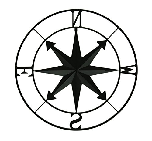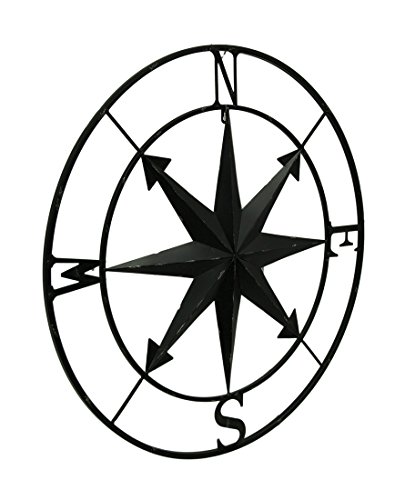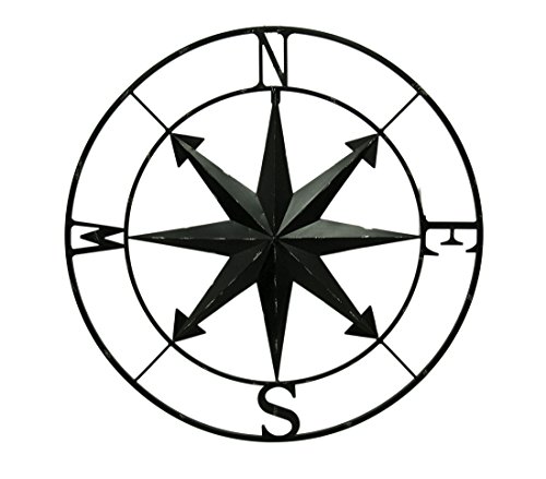 Metal Wall Sculptures Distressed Metal Indoor/Outdoor Compass Rose Wall Hanging 28 Inch - 28 X 28 X 0.5 Inches - Black