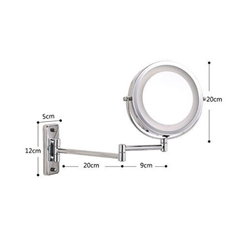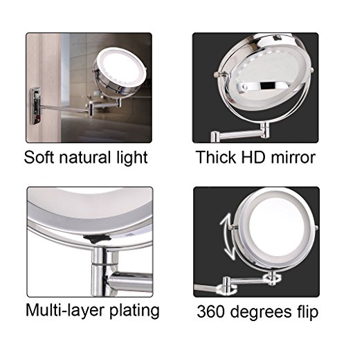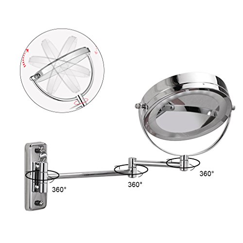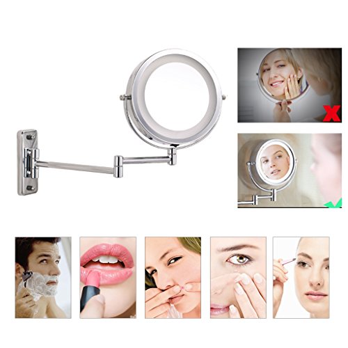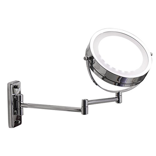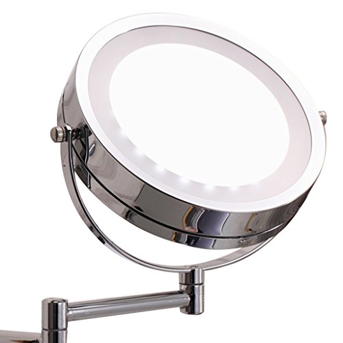 Zinnor Wall Mount LED Lighted Dual Sided Wall Makeup Mirror Equipped Metal Round Wall Mirror, Extending Folding Bathroom Shaving Cosmetic Make Up Mirror