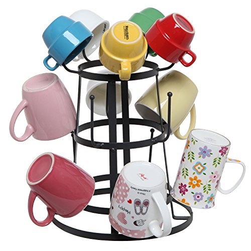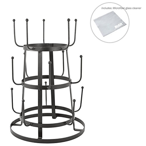 MyGift Vintage Rustic Gray Iron Mug / Cup / Glass Bottle Organizer Tree Drying Rack Stand