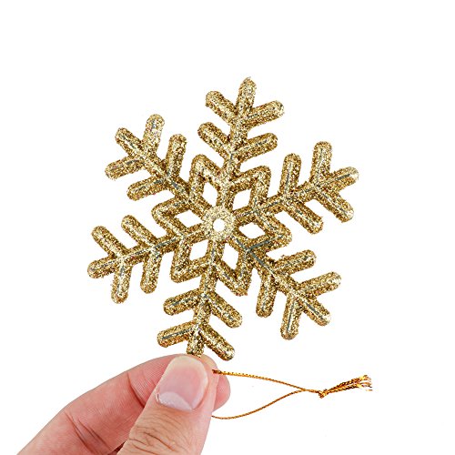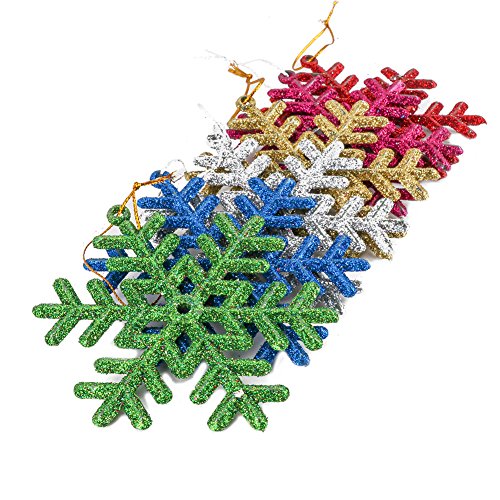 Bidlsbs 24PCS 3.5 Inch/9CM Colorful Plastic Glitter Snowflakes Hanging Ornaments Christmas Party Holiday Home Decorations