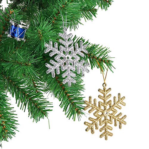 - √.Material:100% new and brand.Made of high quality of glitter plastic in snowflake shapes,and each item with a sliver string,lovely and easy to hang anywhere.