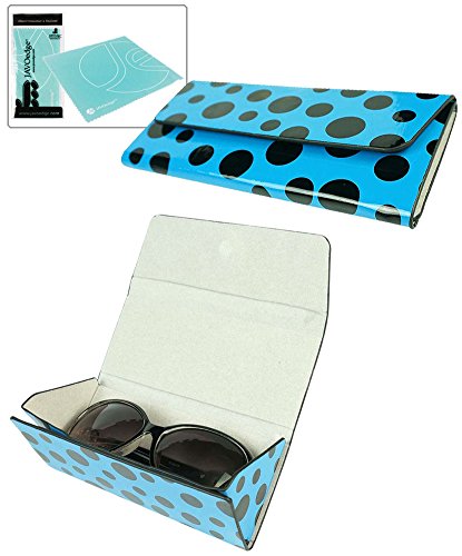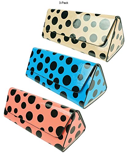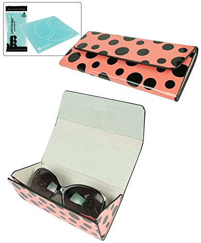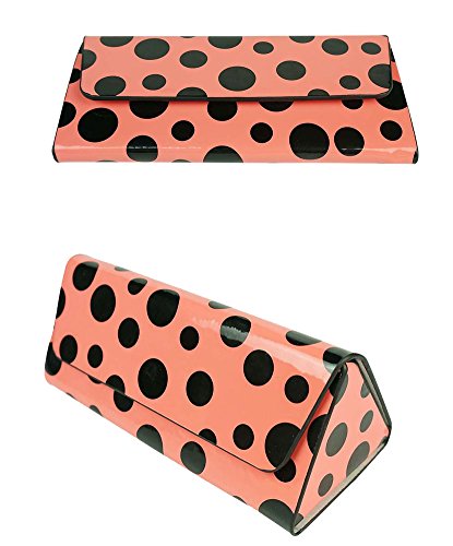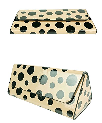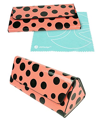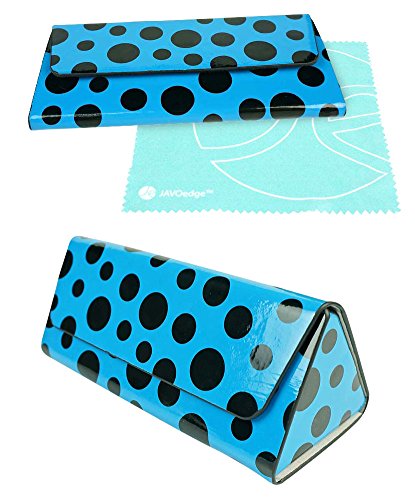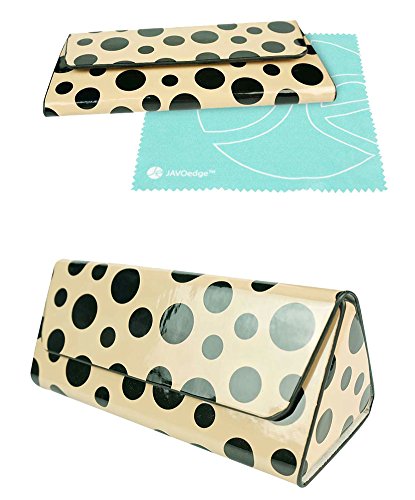 JAVOedge Polka Dot Triangle Prism Eyeglasses Case with Bonus Microfiber Glass Cleaning Cloth