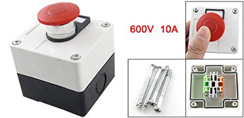 -. Feature : Product Name: Push Button Station. Action Type: Momentary. Contact Type: 1 NO, 1 NC / Ui: 600V.Ith: 10A. Material: Plastic, Metal; Color: Red, White, Black / Red Mushroom Head Size (Approx.): 4 x 2.3cm / 1.57" x 0.9" (D * H ) / Box Size (Approx.): 7.7 x 7.1 x 6.5cm / 3'' x 2.8'' x 2.5'' (L*W*T); Weight: 143g / Mounting Screw Hole Diameter (Approx.): 5mm / 0.196". Package Content: 1 x Push Button Station