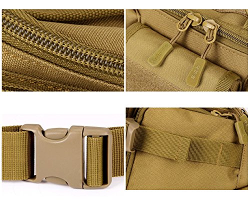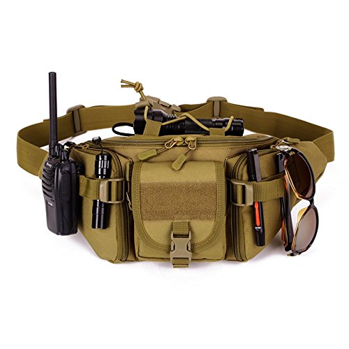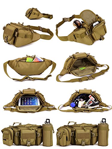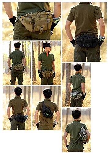 -. Feature : ★★★★★SUPER COLLOCATION - We can meet most of your outdoor gear combination. Y102 Tactical MOLLE Waist bag set of 8 color options, can be combined with the A1/A2/A3/A4/A5/A6/A7/A9/A10/A11 and other small bags with bans. Please see the product picture, there will be a combination of the show. Other combination products please find in the shop. / ★★★★★MOLLE System - The bag body with multiple pals ribbon, can be attached to a small bag, bag accessories, kettle etc. Can also be outside the kettle, flashlight, intercom and other outdoor equipment. / ★★★★★CARRYING MODE - Demension: Height 5.9 Inches,Width 7.87-12.6 Inches,Length 1.97-5.12 Inches,Weight of 14.46 ounces.Can please 550ml Water bottle,Wallet,Ipad Mini,Mobile Phones cigarettes and other travel objects.You can easily carry it because it has a Strap.You can carry on one shoulder with the singel strap.Double zipper can effectively protect the inside of the items. / ★★★★★WIDE VARIETY OF USES - Perfect for most sports activities like jogging, running, Climbing, hiking, mountain biking, gym, horse riding etc / ★★★★★BEST SATISFACTION GUARANTEE - We know you'll love our product, that's why if you aren't 100% satisfied we will provide you with a refund or replacement.NO questions asked!