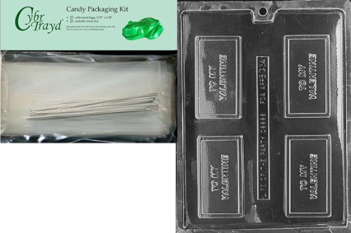 Cybrtrayd "To My Valentine" Business Card Chocolate Candy Mold with Packaging Bundle of 25 Cello Bags, 25 Silver Twist Ties and Chocolate Molding Instructions