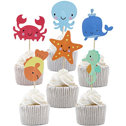 Betop House 24pcs Under the Sea Themed Party Decorating Cake and Cupcake Toppers