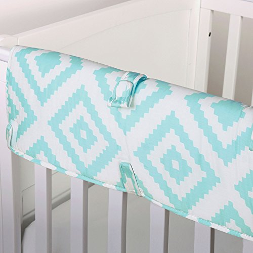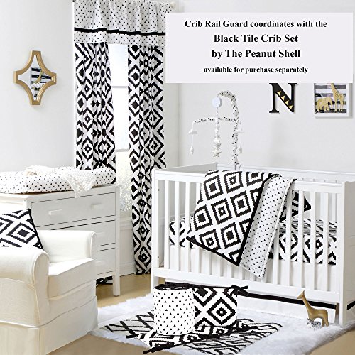 -. Binding : Baby Product -. Brand : The Peanut Shell -. Feature : Crib rail guard protects your teething baby from harmful toxins while keeping the crib looking as good as new, free of teeth marks and drool discoloration / The soft, padded rail-guard securely and easily attaches to the crib with five hook and loop tabs / Features three loops to attach baby's favorite toys to play with while awake / Measures 50.25 by 17.5 inches to fit the long side of most cribs; made from 100% cotton sateen fabric; 100% polyester fill; machine wash and dry / Coordinating crib bedding and nursery decorating accessories are available from The Peanut Shell to create your perfect nursery -. Label : Farallon Brands -. Manufacturer : Farallon Brands -. ProductGroup : Baby Product -. ProductTypeName : BABY_PRODUCT -. Publisher : Farallon Brands -. Studio : Farallon Brands -. Title : Diamond Tile P.R.Int 100% Cotton Padded Crib Rail Guard by The Peanut Shell
