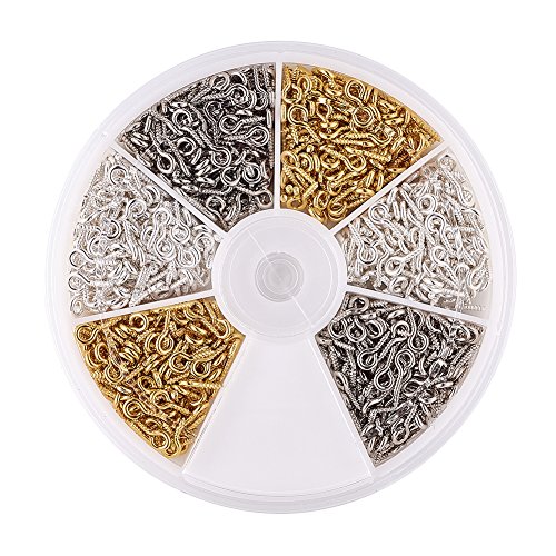 Pandahall 1Box 3 Colors 700pcs Iron Screw Eye Pin Bail Peg for Clay Jewelry, Resin Bead, Golden & Silver & Platinum